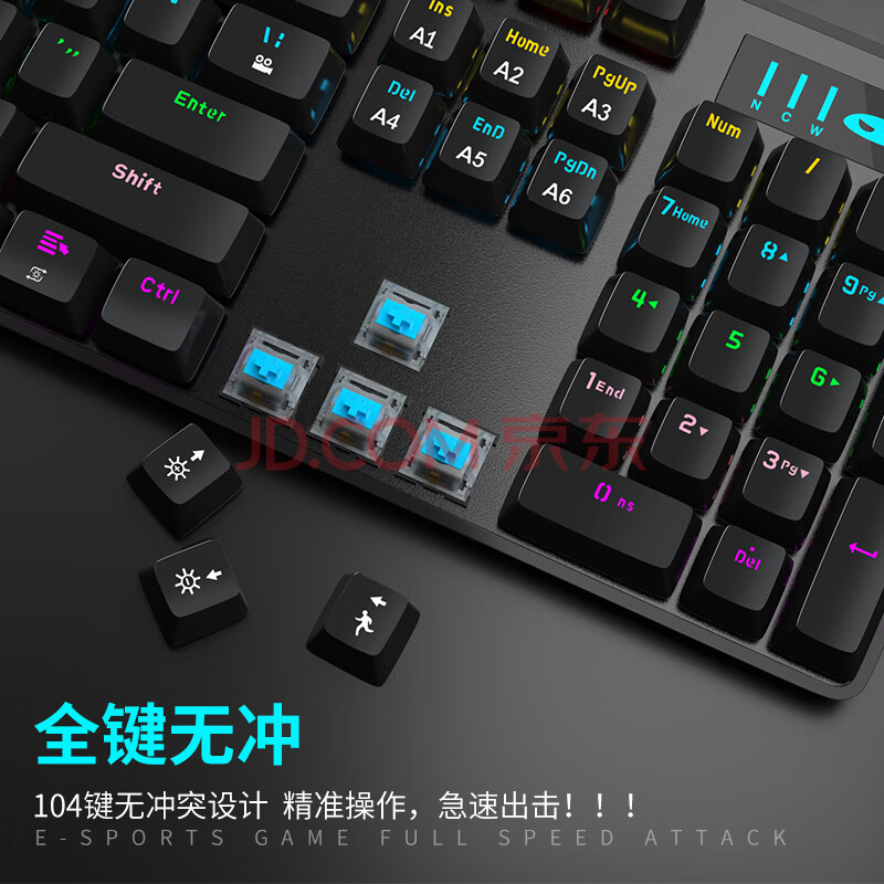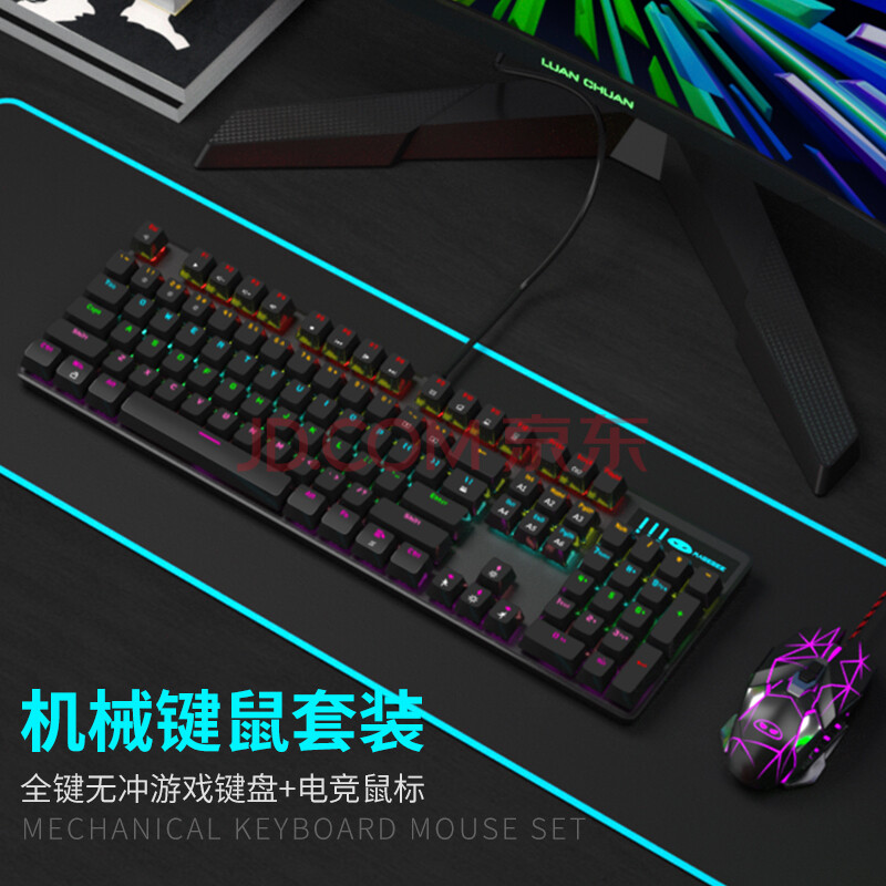 商品相册:MageGee 机械风暴套装 真机械键盘鼠标套装 背光游戏台式电脑笔记本键鼠套装 黑色混光 青轴第