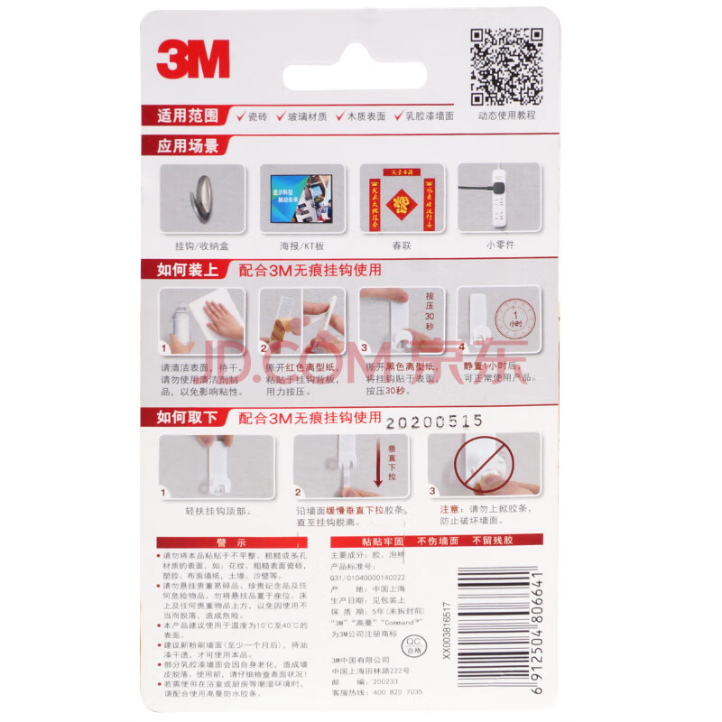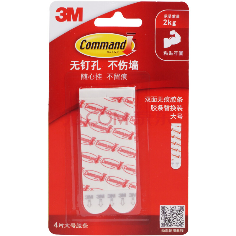 商品相册:3M 双面胶 高曼双面无痕胶条替换装 粘贴牢固取下无痕 4片大号胶条(大号)第