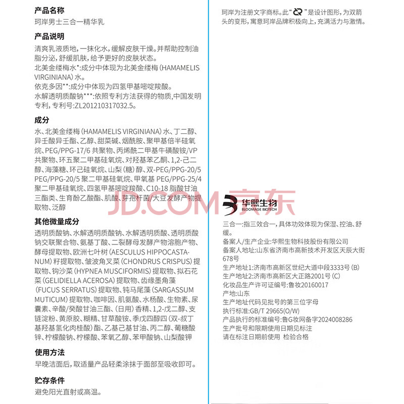 商品相册:珂岸华熙生物珂岸男士套组男士护肤品套装100g精华乳+100ml洁面慕斯第