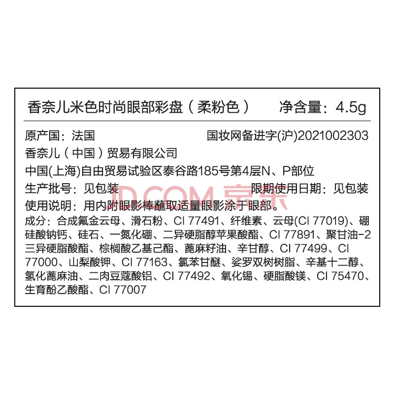 商品相册:香奈儿(CHANEL)米色时尚眼部彩盘(柔粉色/TENDER)4.5g 白桃盘眼影五色眼影盘第