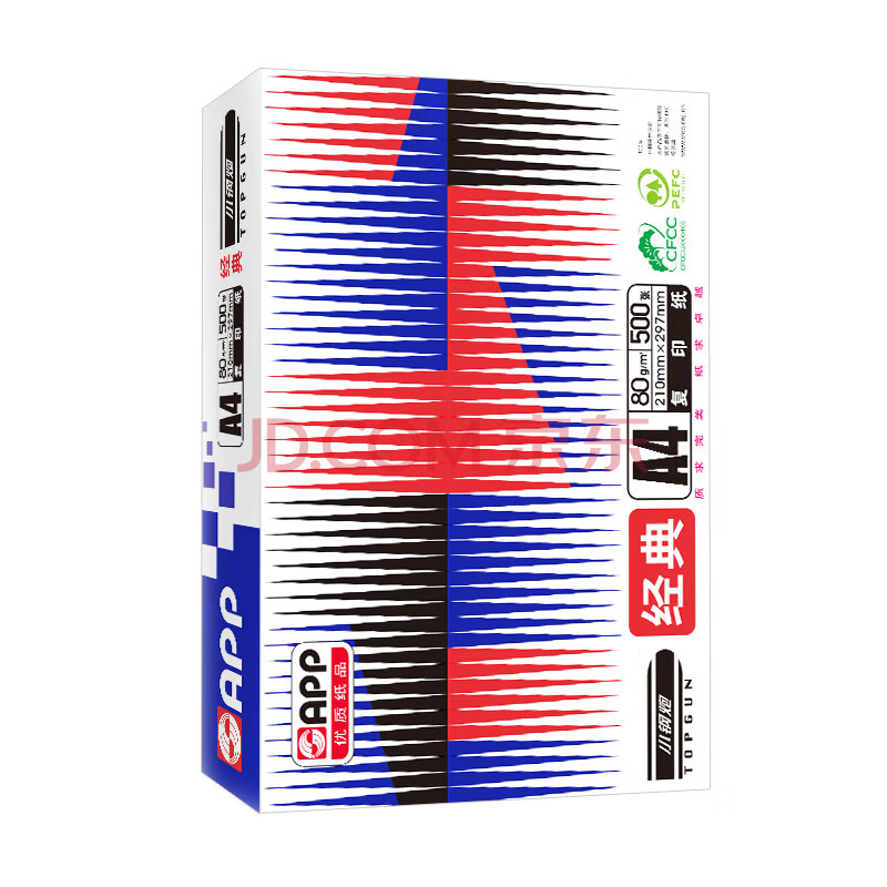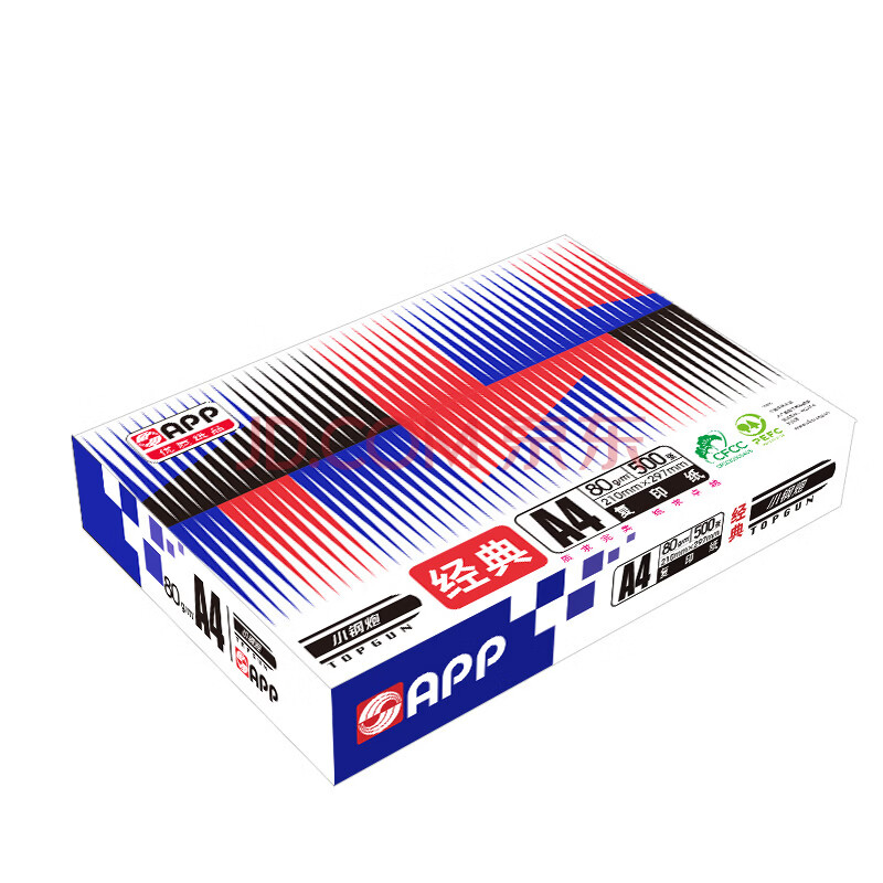 商品相册:APP 金光APP 经典小钢炮(TOPGUN)A4/80g复印纸高档双面打印纸a4纸整箱 500张/包 5包/箱(2500张)第
