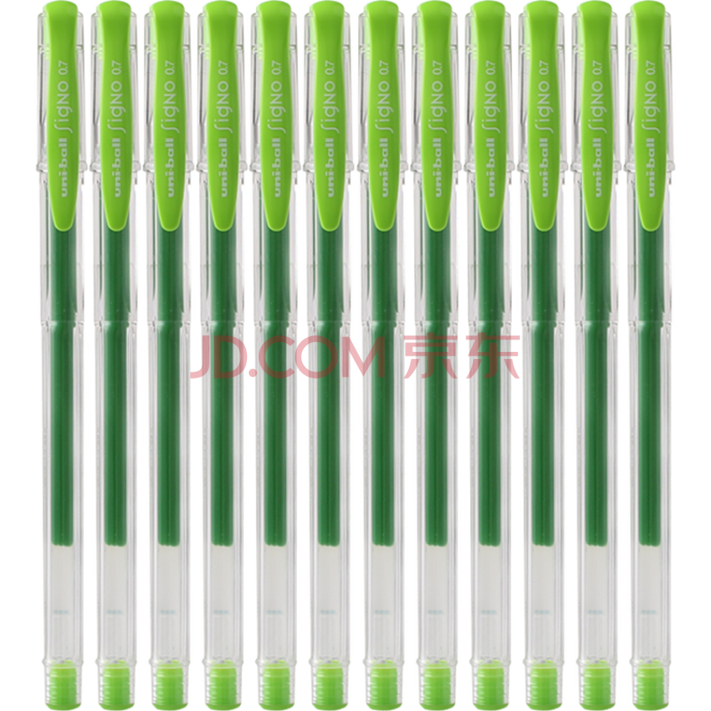 商品相册:uni三菱UM-100彩色中性笔签字笔 0.7mm学生办公防漏墨啫喱笔考试笔 浅绿色 12支/盒第