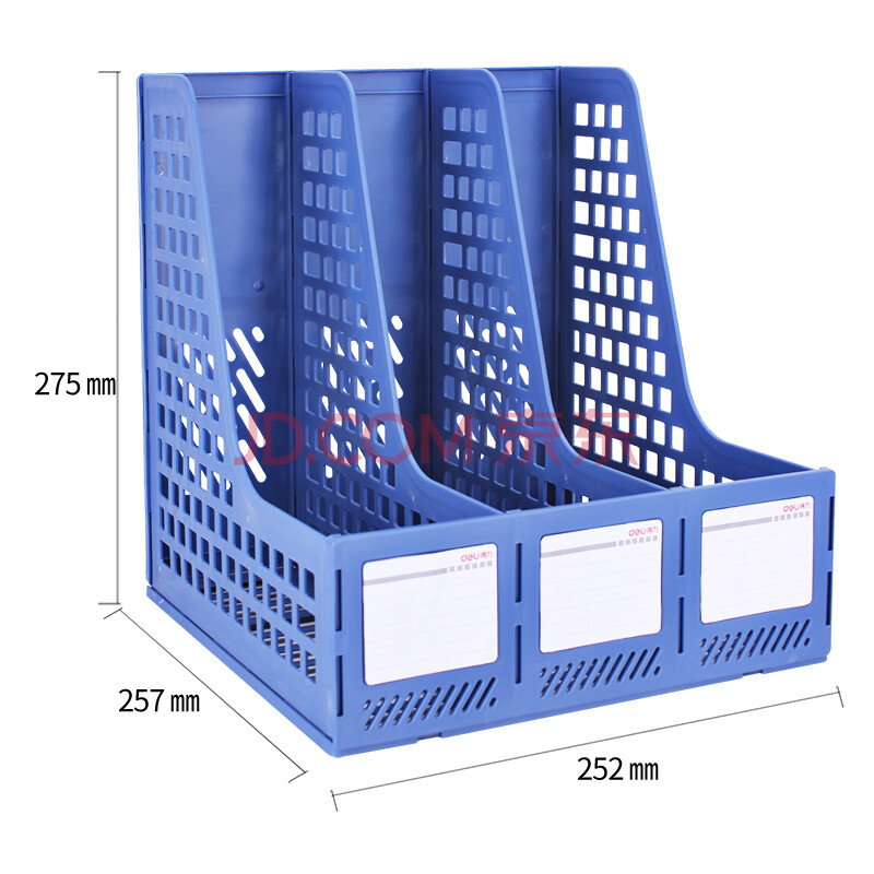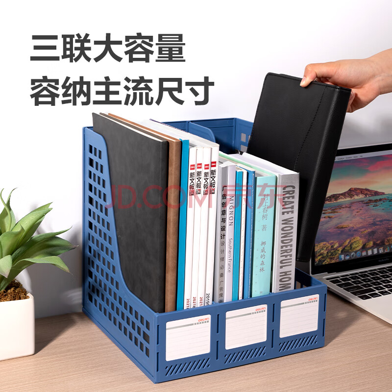 商品相册:得力(deli)3联镂空桌面文件框栏书立架档案收纳盒 办公室带标签资料文件置物架书本资料收纳神器 蓝色27666第