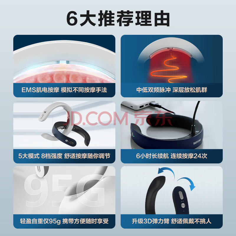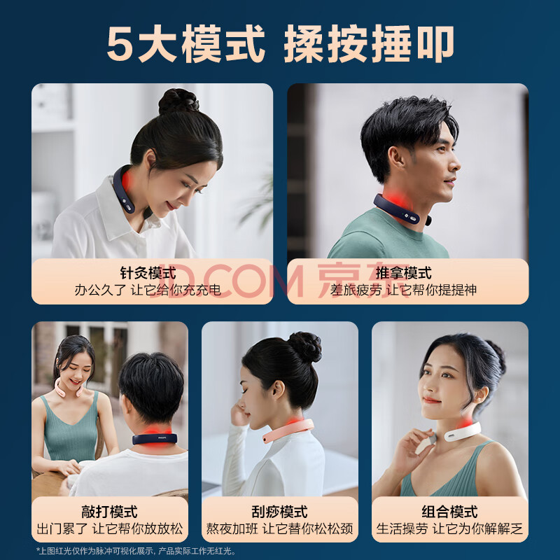 商品相册:飞利浦(PHILIPS)颈椎按摩器颈椎按摩仪肩颈按摩仪频脉冲按摩肩颈便携 3302N蓝 生日礼物节日礼品送朋友第