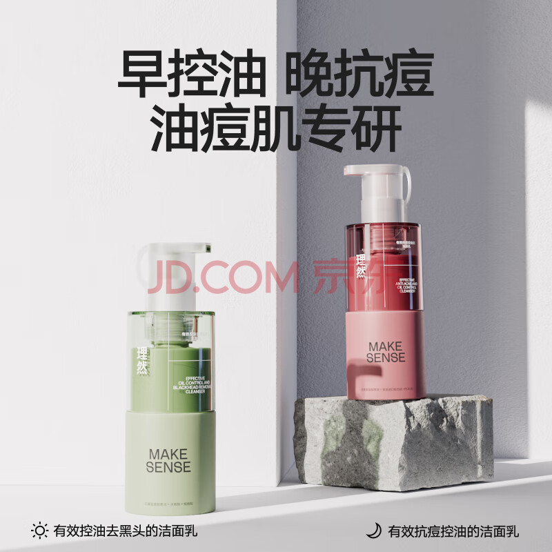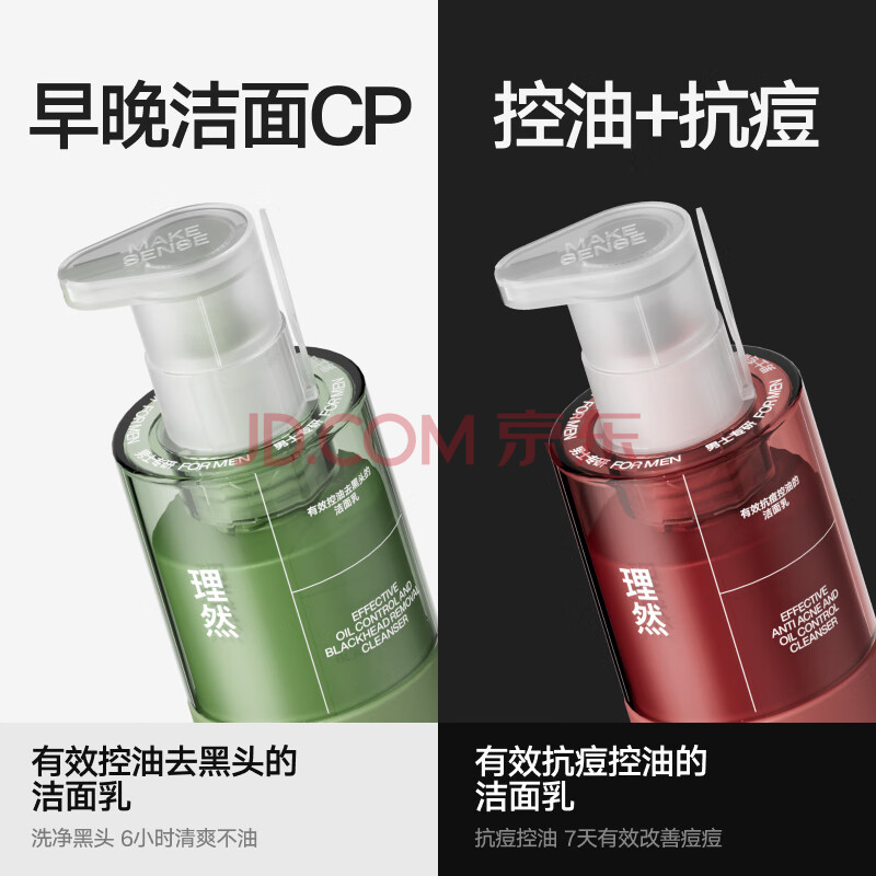 商品相册:理然男士控油抗痘洗面奶 氨基酸去油祛痘洁面乳油痘肌护肤品男150g*2第
