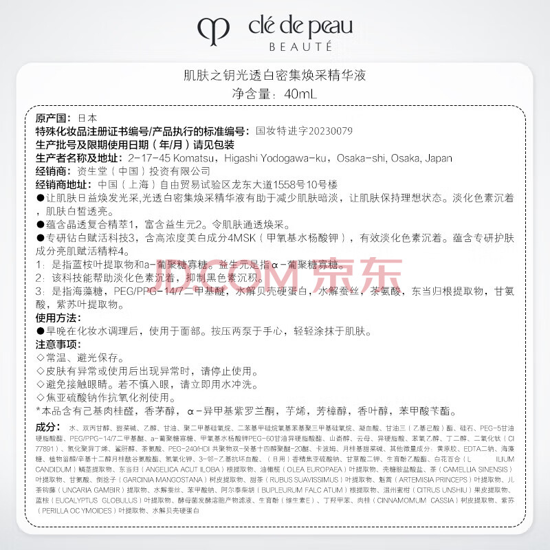 商品相册:肌肤之钥(CPB)光透白精华液40mL匀净焕白生日礼物送女友第