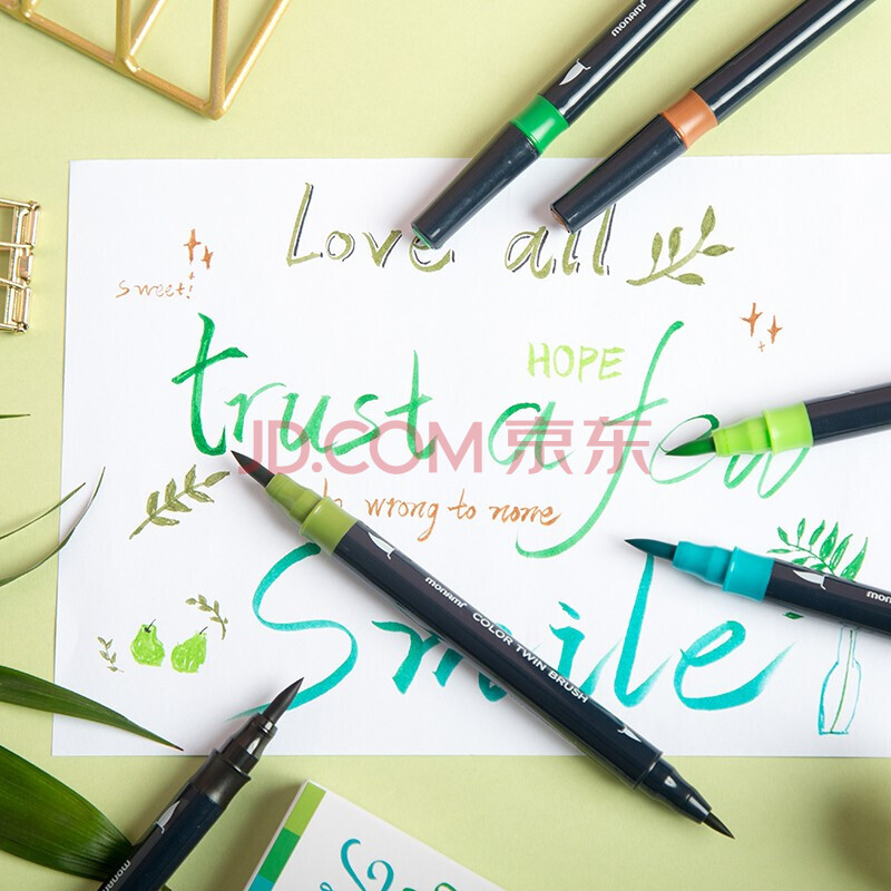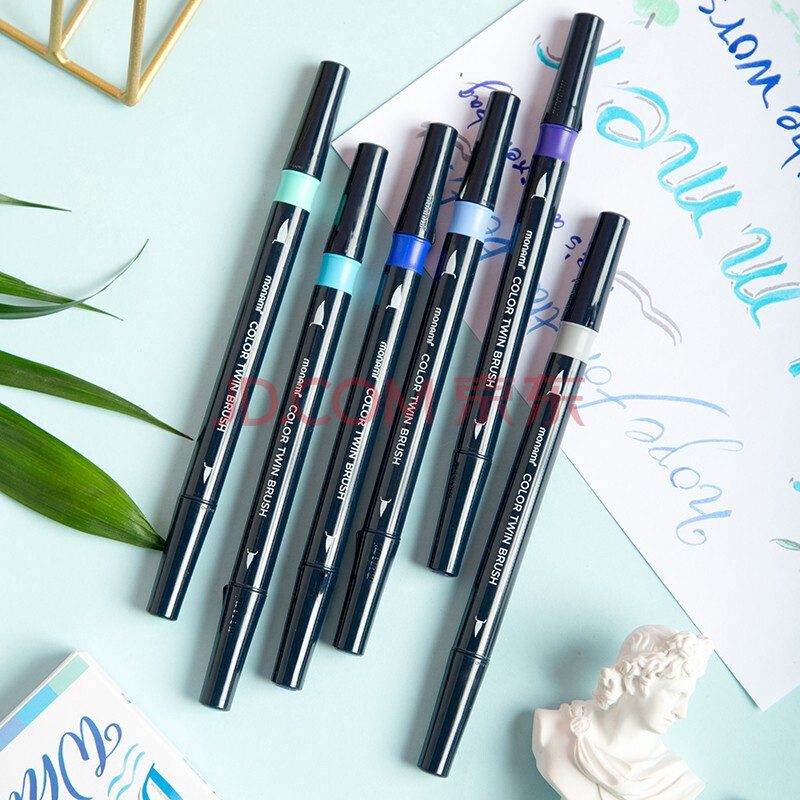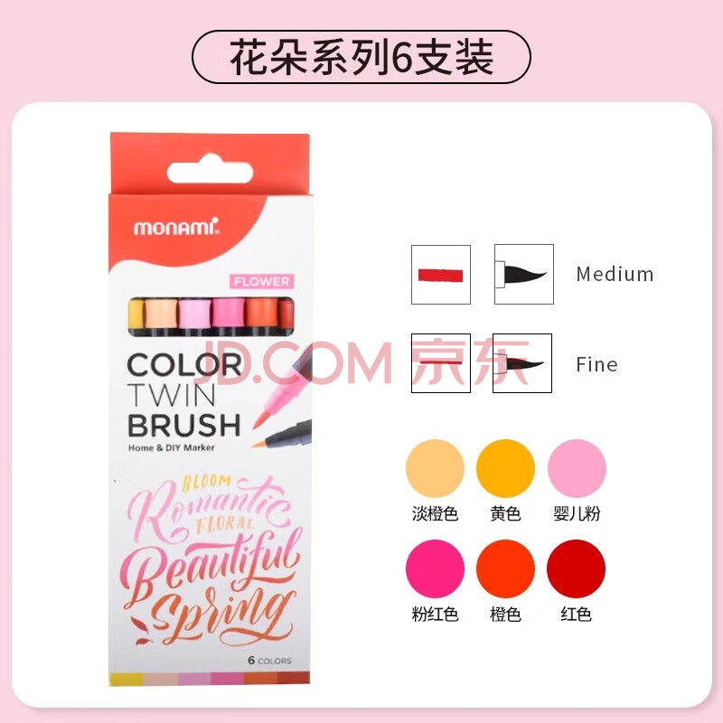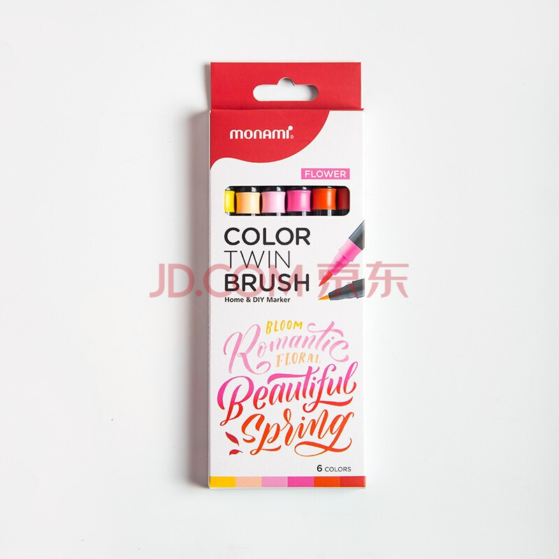 商品相册:慕那美(monami)彩色秀丽笔软头弹性手帐软毛笔brush英文花体彩绘笔6色套装FLOWER04038Z06-FL水彩笔第