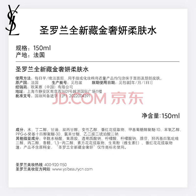 商品相册:YSL圣罗兰藏金柔肤精华水补水滋润护肤品礼盒生日礼物送女友第