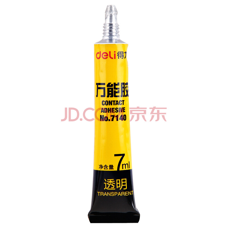 商品相册:得力(deli)软性万能胶水 强力胶粘剂 无痕胶透明液体胶水 可粘金属皮革陶瓷 7ml/支 10支装 7140第