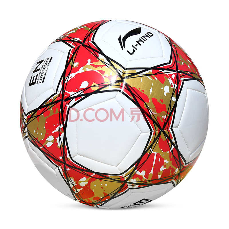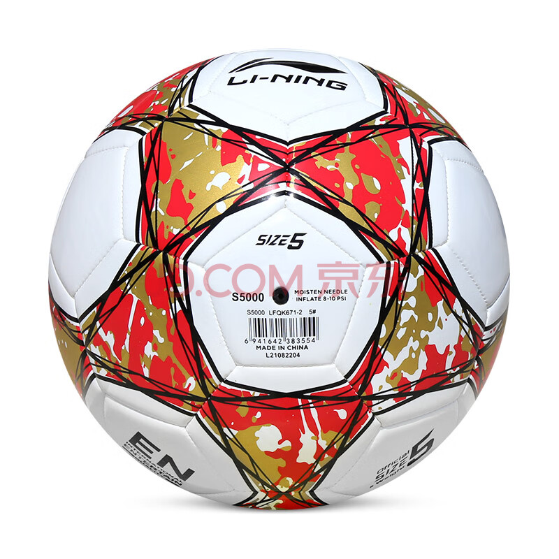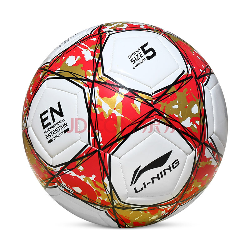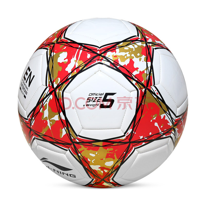 商品相册:李宁(LI-NING)足球5号球考试训练耐磨 防滑机缝缠纱橡胶内胆 白红金 LFQK671-2第