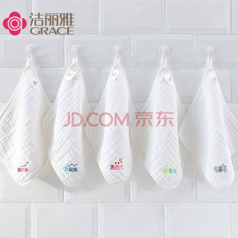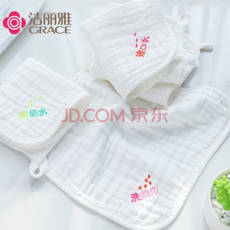 商品相册:洁丽雅(Grace)A类纯棉6层纱布口水巾5条装婴儿小毛巾方巾宝宝精梳棉手绢手帕第