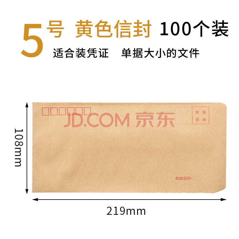 商品相册:递乐 5号牛皮纸信封袋定制票据工资袋 牛皮纸邮局标准信封100个/包 4605第