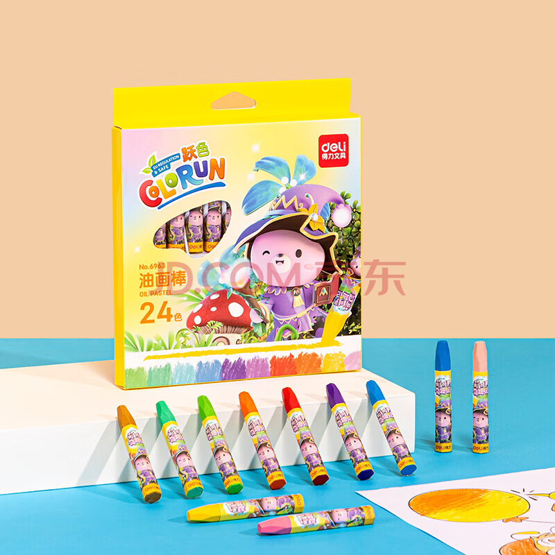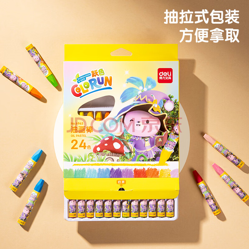 商品相册:得力(deli)24色学生丝滑油画棒易上色儿童蜡笔绘画笔儿童炫彩棒蜡笔玩具女孩儿童第