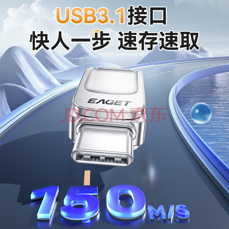 商品相册:忆捷(EAGET)64GB Type-C USB3.2 手机U盘 CU31 高速全金属mini迷你双接口安卓办公电脑两用便携车载小优盘 第