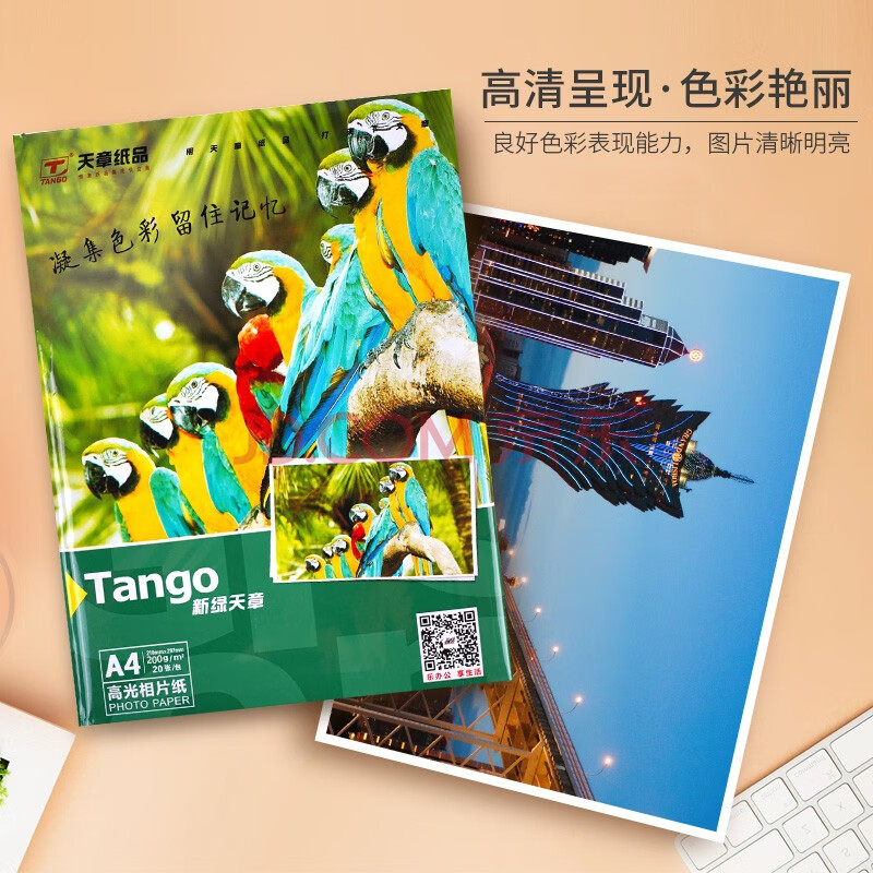 商品相册:天章 (TANGO)新绿天章 A4相纸200g 高光风景照相片纸 高光泽家庭照相纸 A4喷墨证件照照相片打印纸 20张/包第