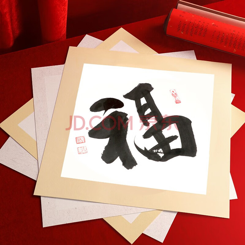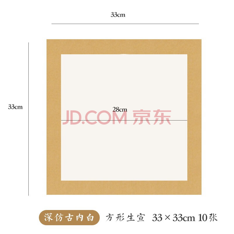 商品相册:一海堂文化 卡纸 宣纸 文房四宝国画书法绘画装框用硬卡方形镜片纸 方形深仿古内白-生宣 33cm*10张第