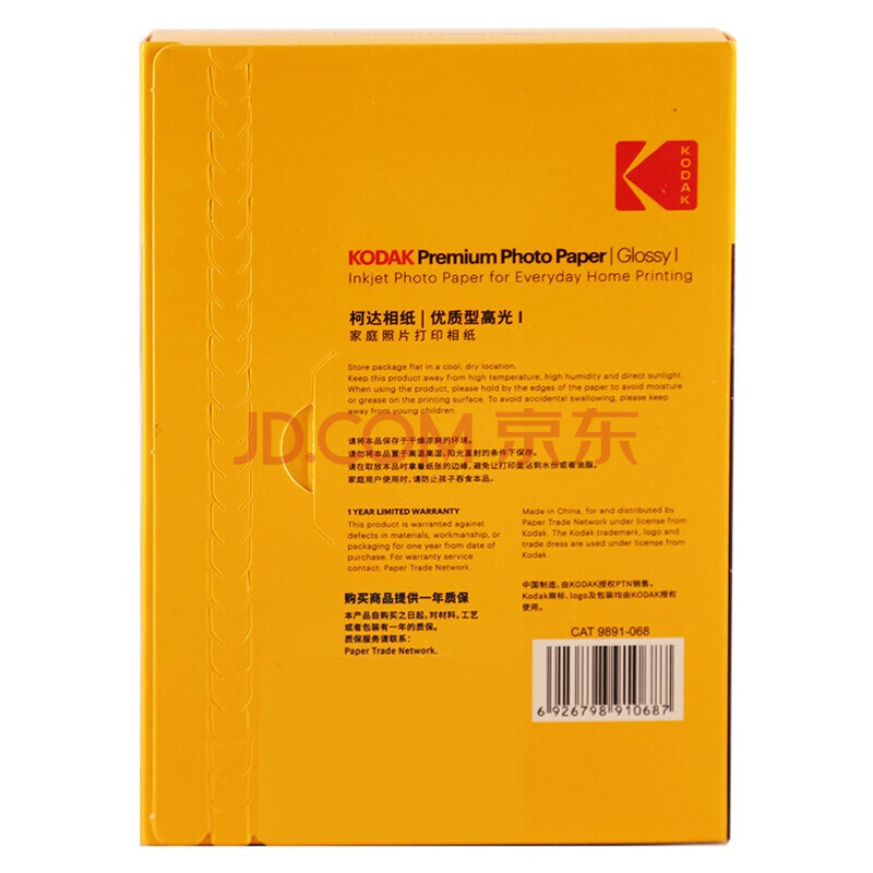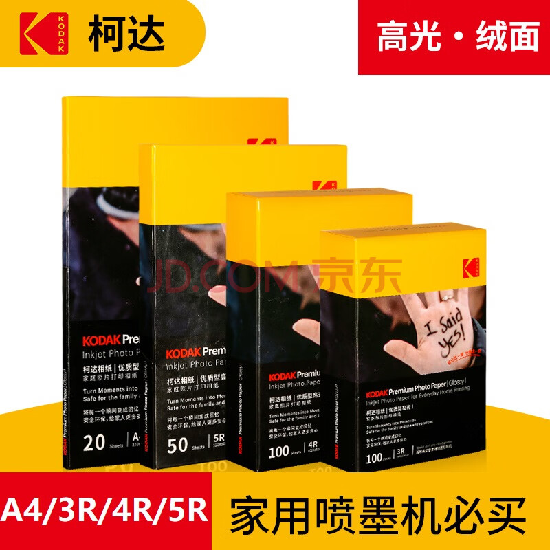商品相册:KODAK柯达 A4 250g 家用优质型RC高光面打印相片纸/喷墨打印照片纸/相纸 20张装9891-444第
