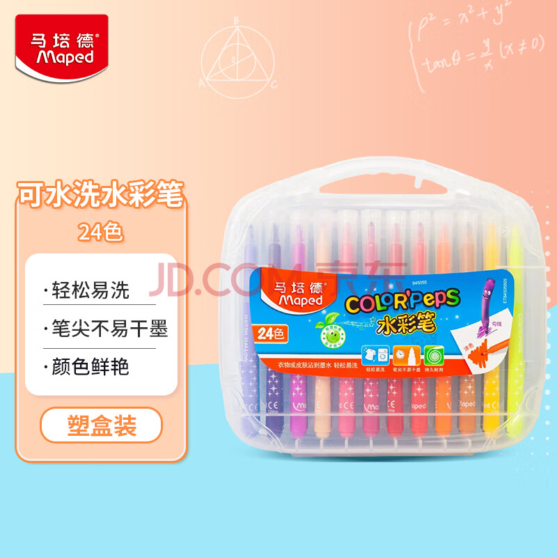 商品相册:马培德(Maped)可水洗水彩笔 幼儿小学生绘画彩色笔 初学彩绘涂鸦画笔 845055CH【24色/塑盒装】儿童美育礼物第