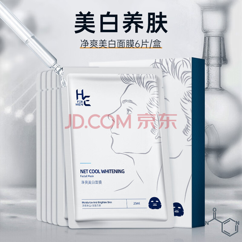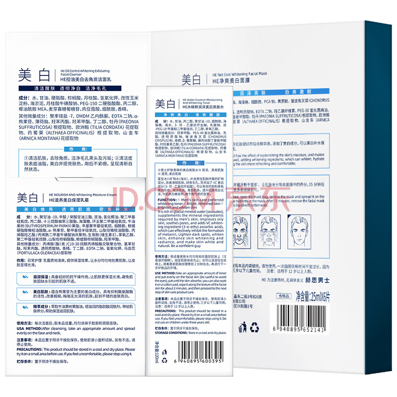 商品相册:赫恩(H&E)男士美白焕颜护肤品套装洗面奶200g爽肤水120ml面霜50g面膜6片/盒第