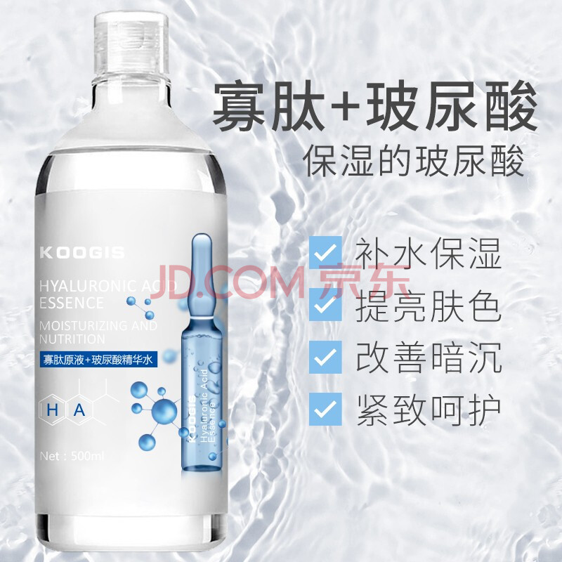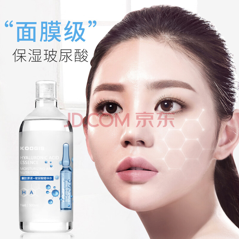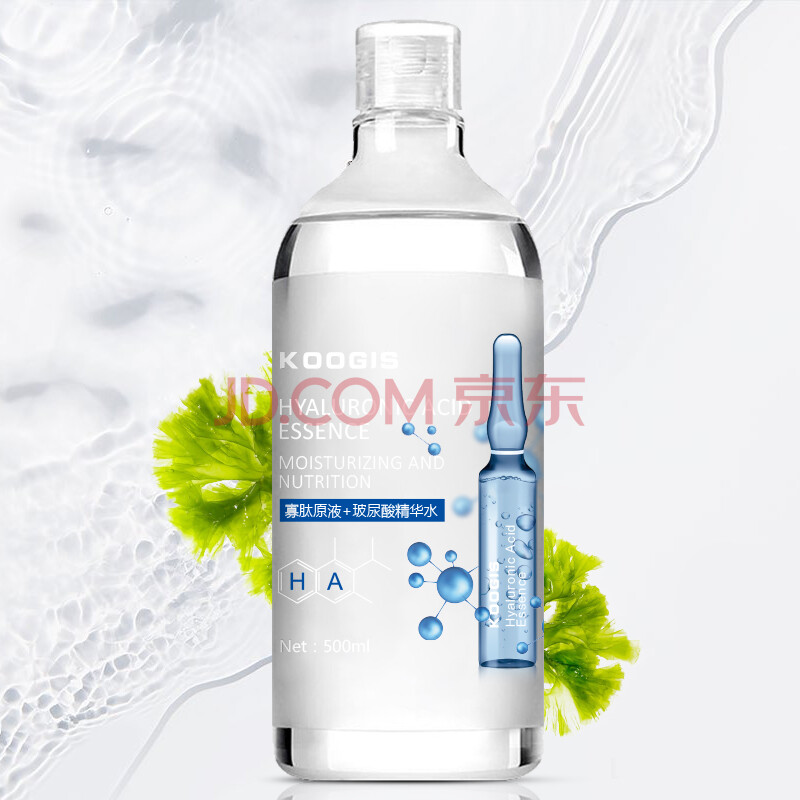 商品相册:KOOGIS大瓶玻尿酸精华液原液全分子量补水保湿提亮肤色爽肤湿敷水500ml第