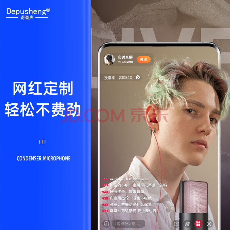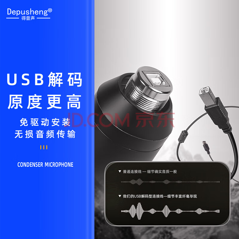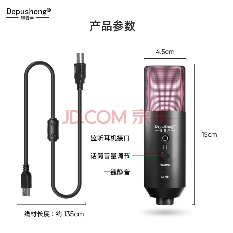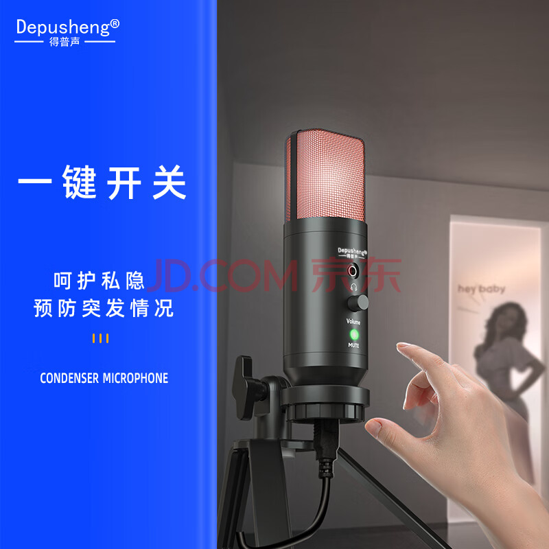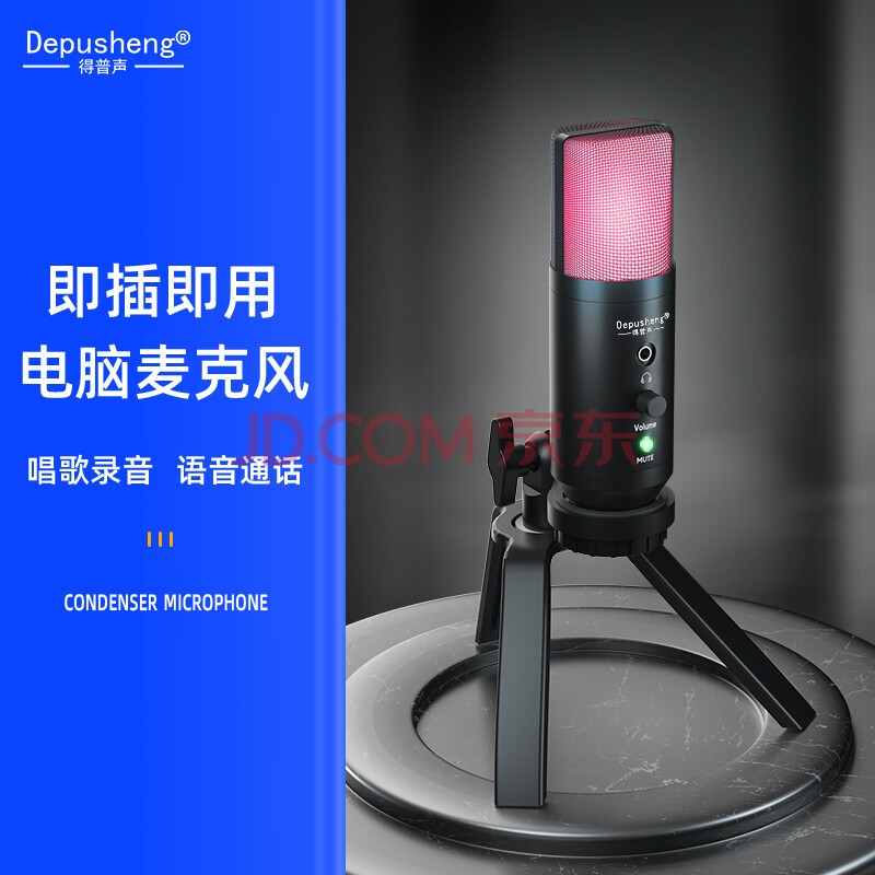 商品相册:得普声直播麦克风手机电脑 USB声卡唱歌录音配音语音K歌网课教学Type-C钉钉游戏电竞带灯收音麦话筒 A10第