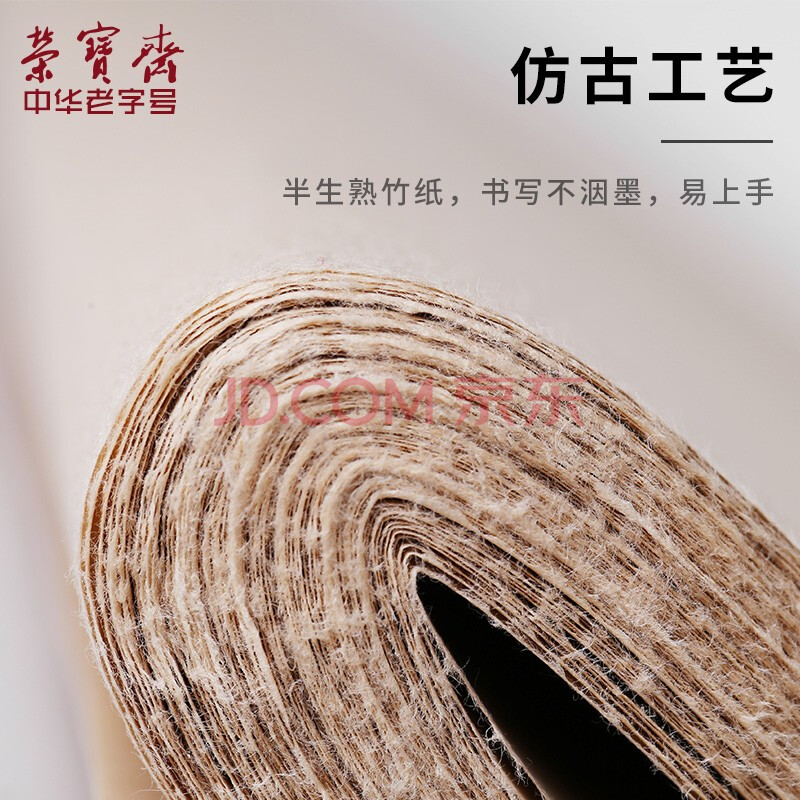 商品相册:荣宝斋 书画宣纸 日星宣纸仿古毛边纸书法毛笔字初学者练习纸加厚元书纸竹浆 生宣四尺对开100张/刀第