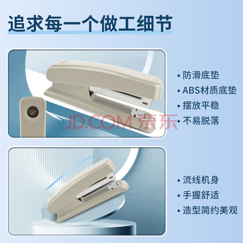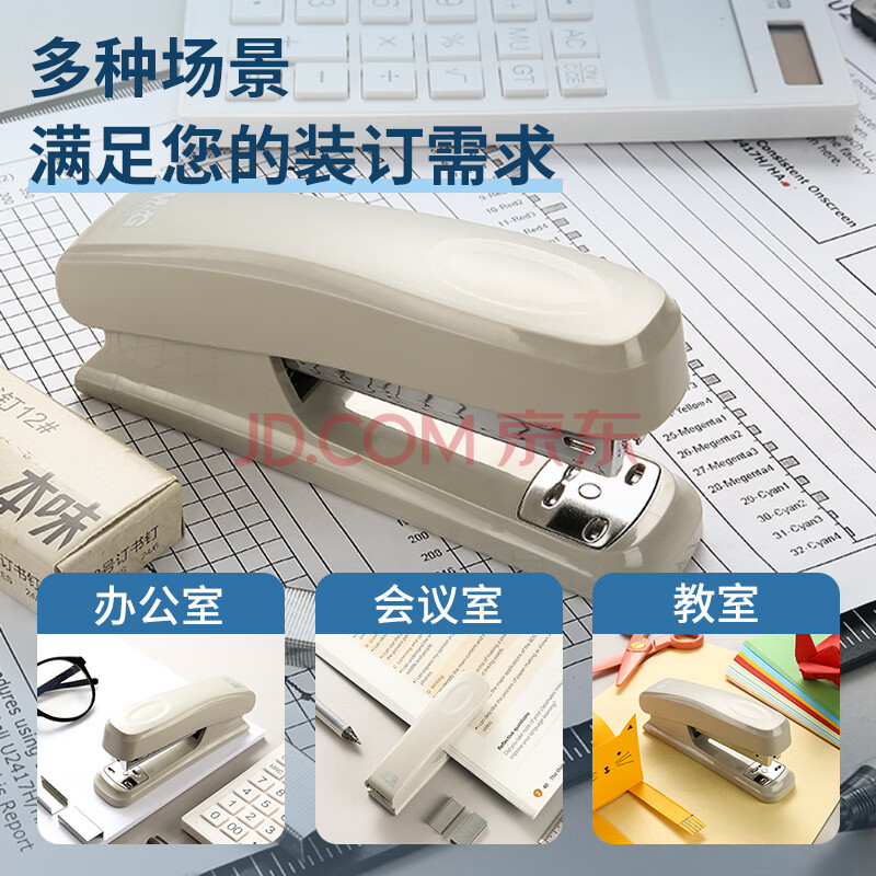 商品相册:晨光(M&G)文具12#订书机 耐用便携订书器 按压装订家用办公用品 适配24/6 26/6订书钉 灰色 ABS92723第