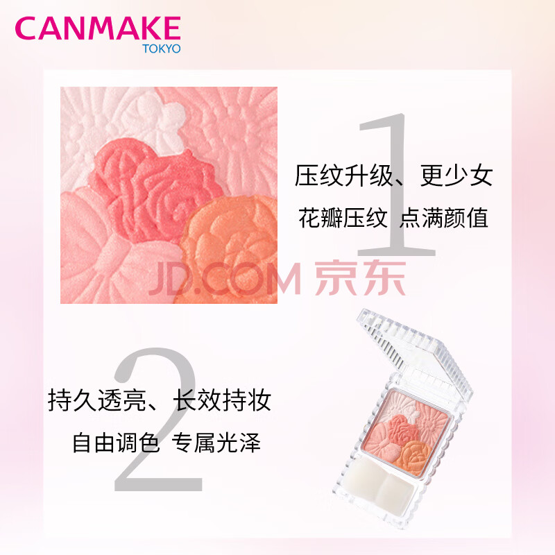 商品相册:CANMAKE井田日本花瓣五色腮红修容高光一体盘七夕礼物送女友橙粉红色03第