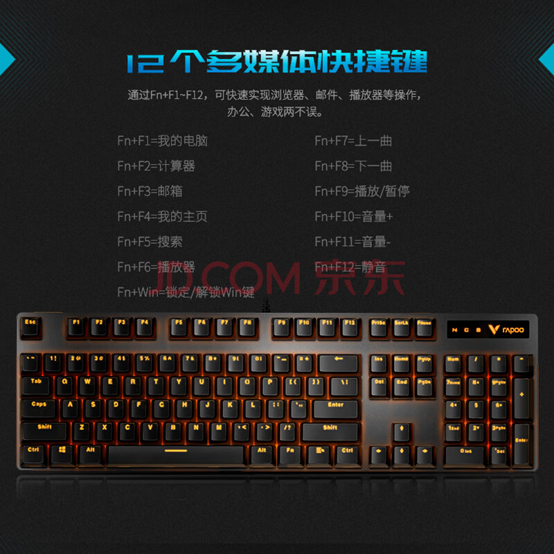 商品相册:雷柏(Rapoo)V500PRO单光版 有线背光机械键盘 104键全尺寸游戏电竞笔记本电脑办公吃鸡全键无冲键盘 黑轴第
