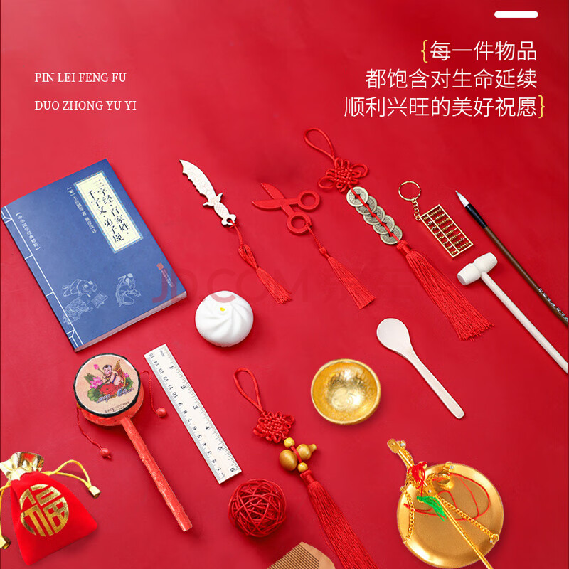 商品相册:bledilait抓周道具全套男女龙宝宝一周岁生日布置用品抓阄套装16+5礼第1张/共7