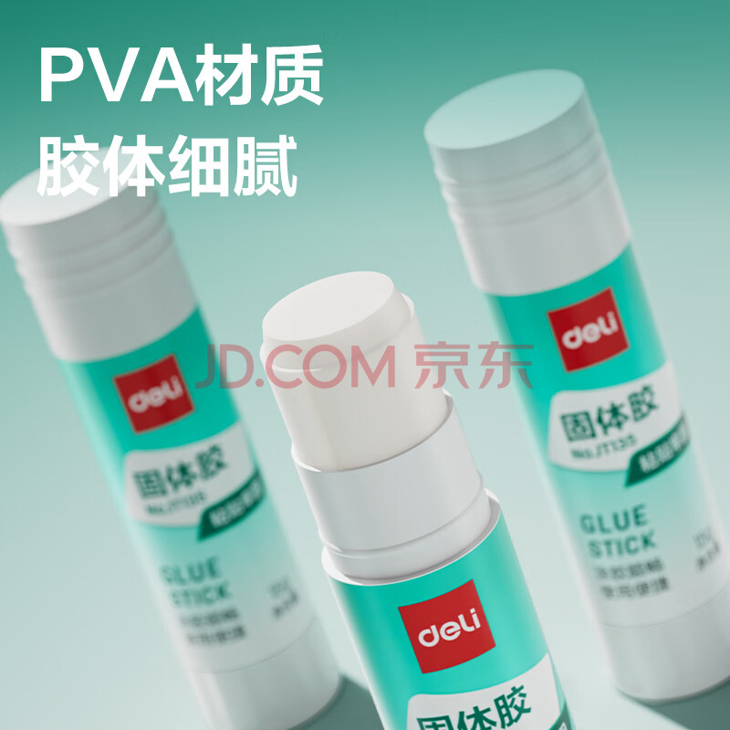 商品相册:得力(deli)(deli)15g高粘PVA固体胶水 速干可水洗胶棒 DIY手工粘胶学生文具 学生文具 12支/盒 办公用品 7104第