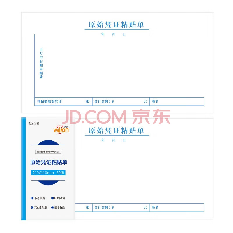 商品相册:惠朗(huilang)原始凭证粘贴单210*110mm 50页/本5本/包 借款审批支出单据财务通用会计记账凭证纸第