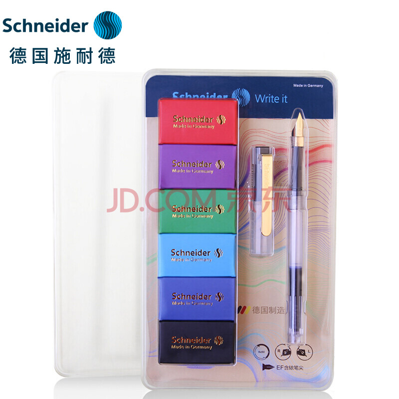 商品相册:施耐德(Schneider)【礼物】钢笔学生用成人直液式练字笔男女学生23K镀金笔尖签字笔BK406墨胆礼盒套装EF尖透明色第