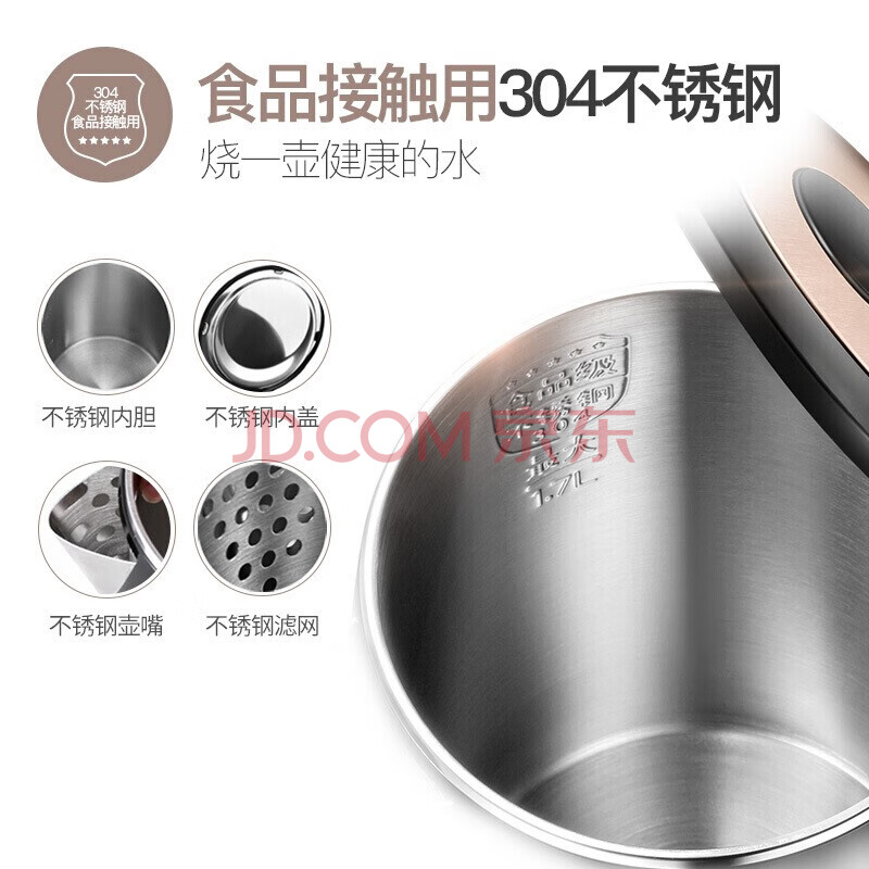 商品相册:苏泊尔 SUPOR SWF17S26A 304食品级不锈钢全钢无缝双层防烫保温全自动断电防干烧快速煮热水壶(线下同款)第