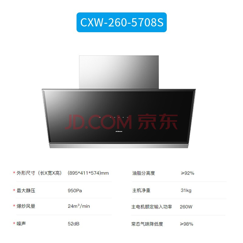 商品相册:老板( Robam )950PA大风压 24立方大吸力 菱形油网一抹即净 抽油烟机燃气灶套装5708S+9B00第1张/共5