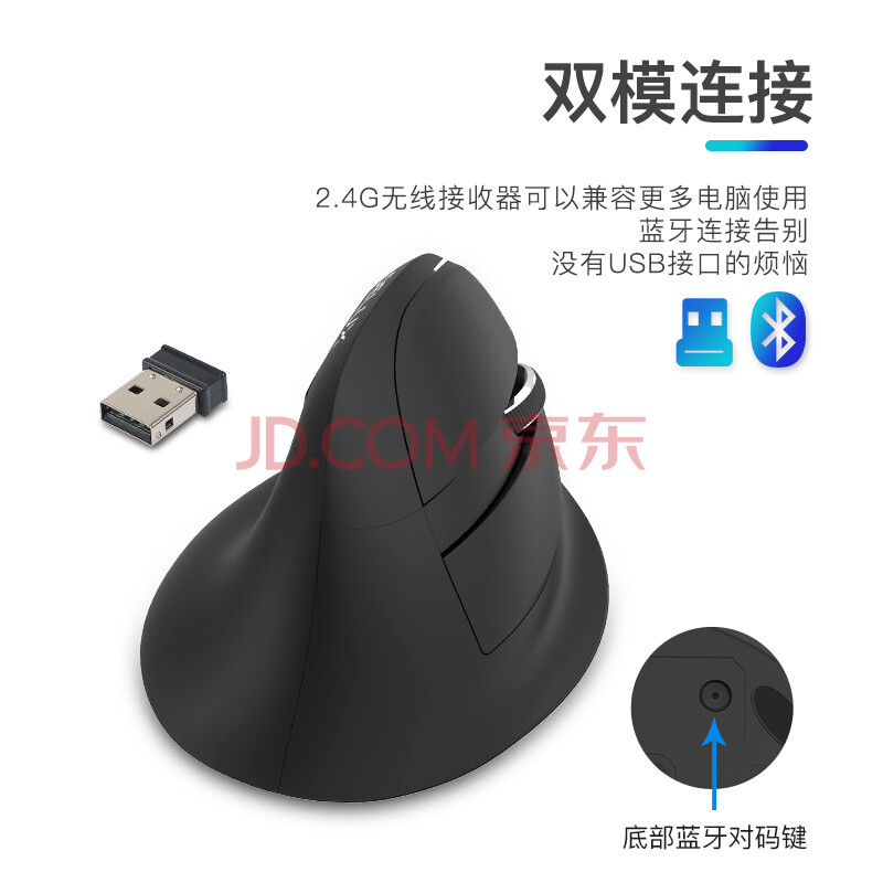 商品相册:多彩(Delux)M618miniDB人体工程学鼠标 立式垂直鼠标 无线蓝牙鼠标双模笔记本电脑办公 干电池版 黑色第