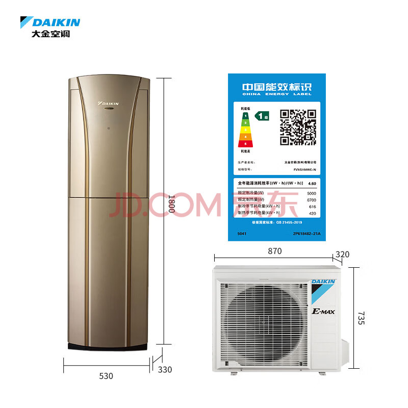 商品相册:大金(DAIKIN)空调 G柜 3匹1级能效 智能触控环绕气流纯铜管变频冷暖柜机FVXG172WC-N金色第