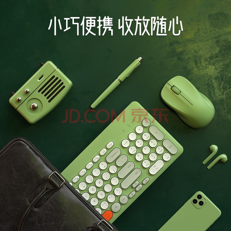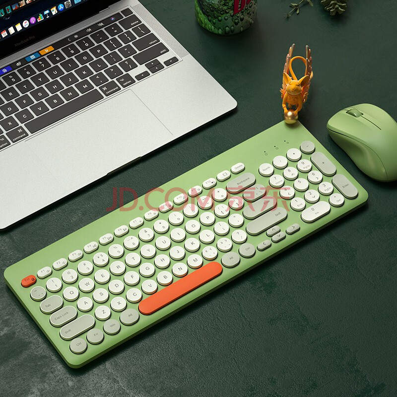 商品相册:B.O.W航世 MK221无线键盘鼠标套装 混彩复古巧克力无线键鼠95键 笔记本台式通用键鼠套装 橙灰绿第