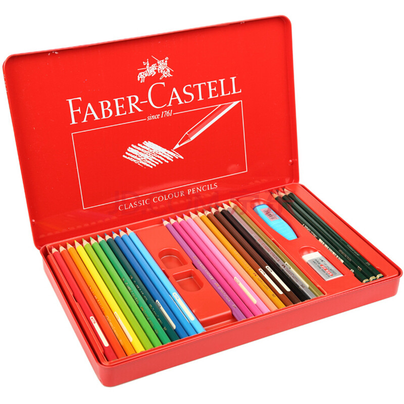 商品相册:辉柏嘉(Faber-Castell)经典骑士油性彩铅笔彩色铅笔48色手绘画笔涂色填色彩笔115848红铁盒装美术写生第