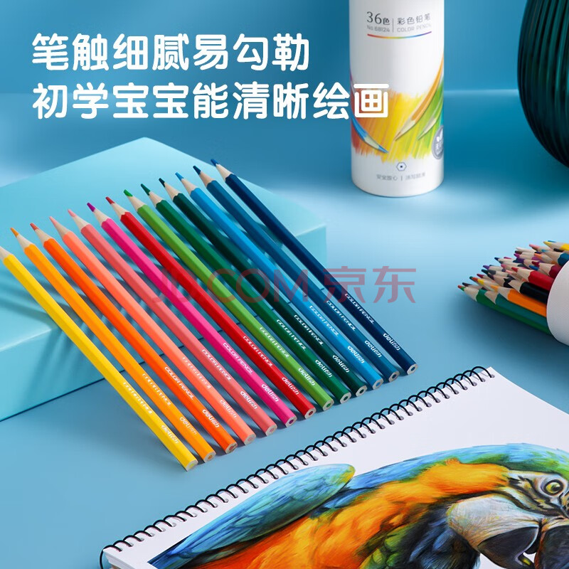 商品相册:得力(deli)36色油性彩铅纸桶装绘画艺术写生彩色铅笔儿童涂色填色彩笔绘画笔套装礼物68124速写彩笔第