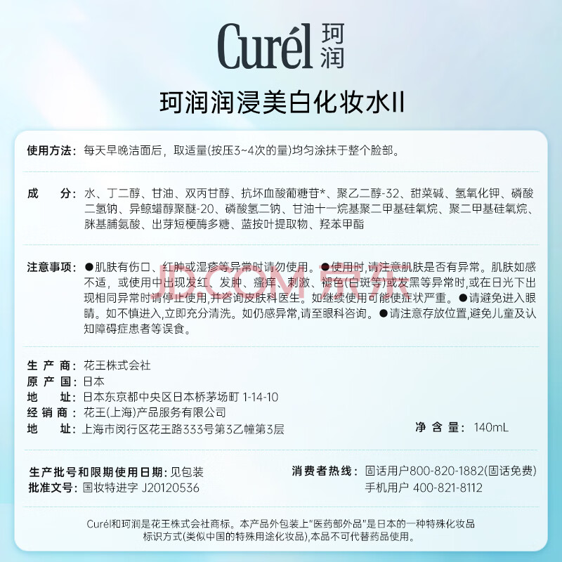 商品相册:珂润(Curel)美白化妆水II 140ml保湿型爽肤水化妆水补水敏感肌男女士生日礼物第