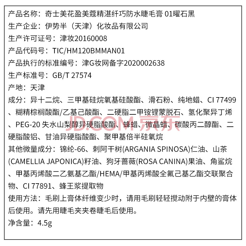 商品相册:奇士美(kiss me)花盈美蔻精湛纤巧防水睫毛膏4.5g 01曜石黑 纤细刷头 不易晕染第
