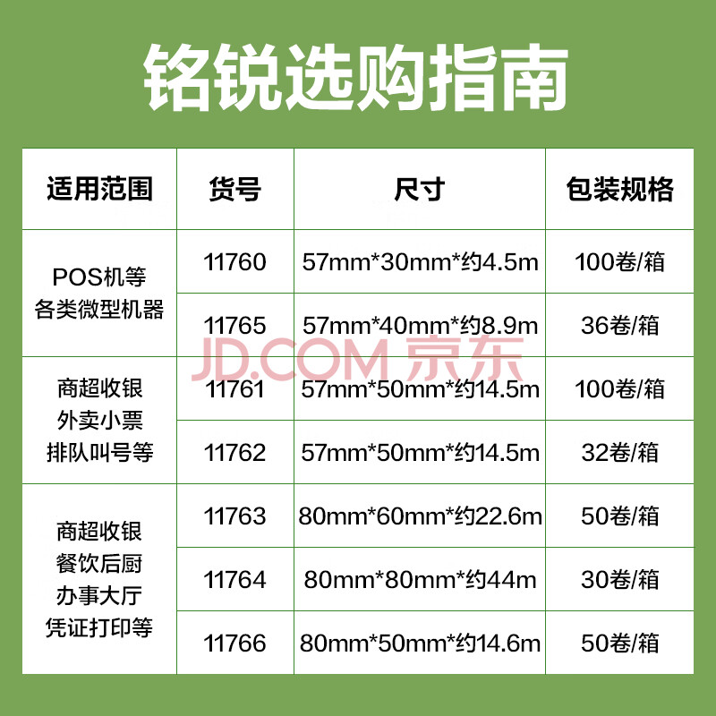 商品相册:得力(deli)57*30型4.5米*100卷 热敏收银纸 外卖超市酒店收银打印小票纸 11760【适配58mm机器 5801P等】第