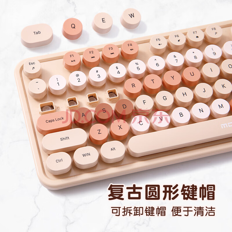 商品相册:摩天手(Mofii) sweet无线复古朋克键鼠套装 办公键鼠套装 鼠标 电脑键盘 笔记本键盘 奶茶色混彩第
