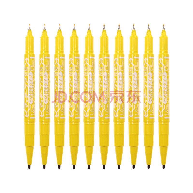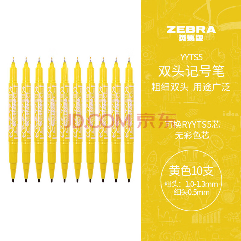 商品相册:斑马牌(ZEBRA)YYTS5黄色油性记号笔粗细双头速干笔彩色学生美术绘图画勾线签字笔高颜值文具 10支第