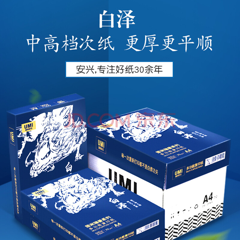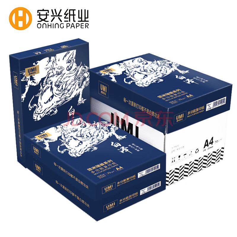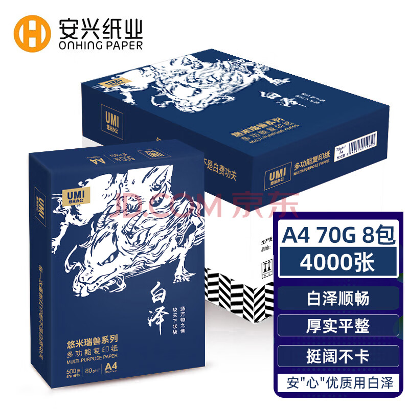 商品相册:安兴 a4打印纸 白泽 A4纸 中高档 平顺不卡纸 办公 洁白70g复印纸 500张/包 8包一箱4000张第