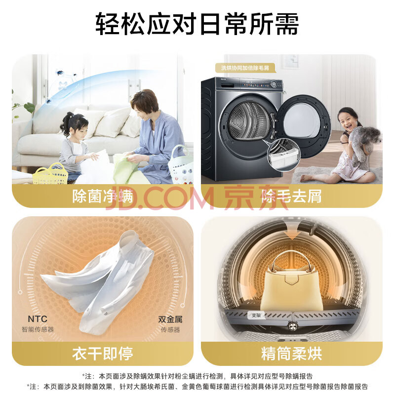 商品相册:海尔(Haier)云溪2.0 双擎热泵全自动滚筒烘干机烘衣服干衣机10KG 家电补贴京东自营 HGY100-F376U1第