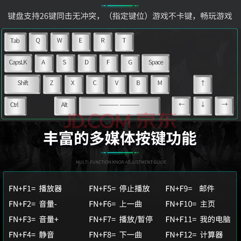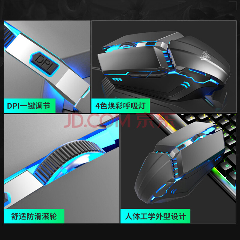 商品相册:狼蛛(AULA)T200有线键盘鼠标套装 游戏键盘鼠标套装 真机械手感键盘 多功能旋钮 背光键盘 键鼠套装 黑色第