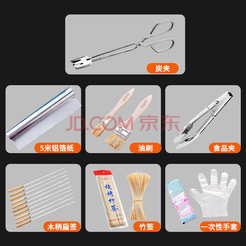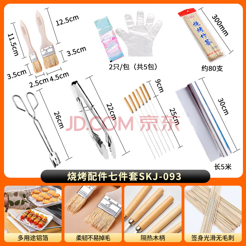 商品相册:尚烤佳(Suncojia)烧烤配件套装竹签食品夹炭夹油刷不锈钢木柄烧烤签手套铝箔锡纸第