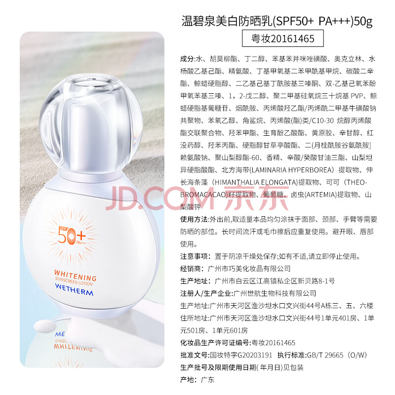 商品相册:温碧泉防晒霜美白祛斑防晒乳SPF50+PA+++50g男女户外军训高倍防晒伤晒黑第